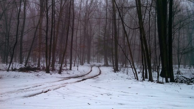 tracks cabin in snow